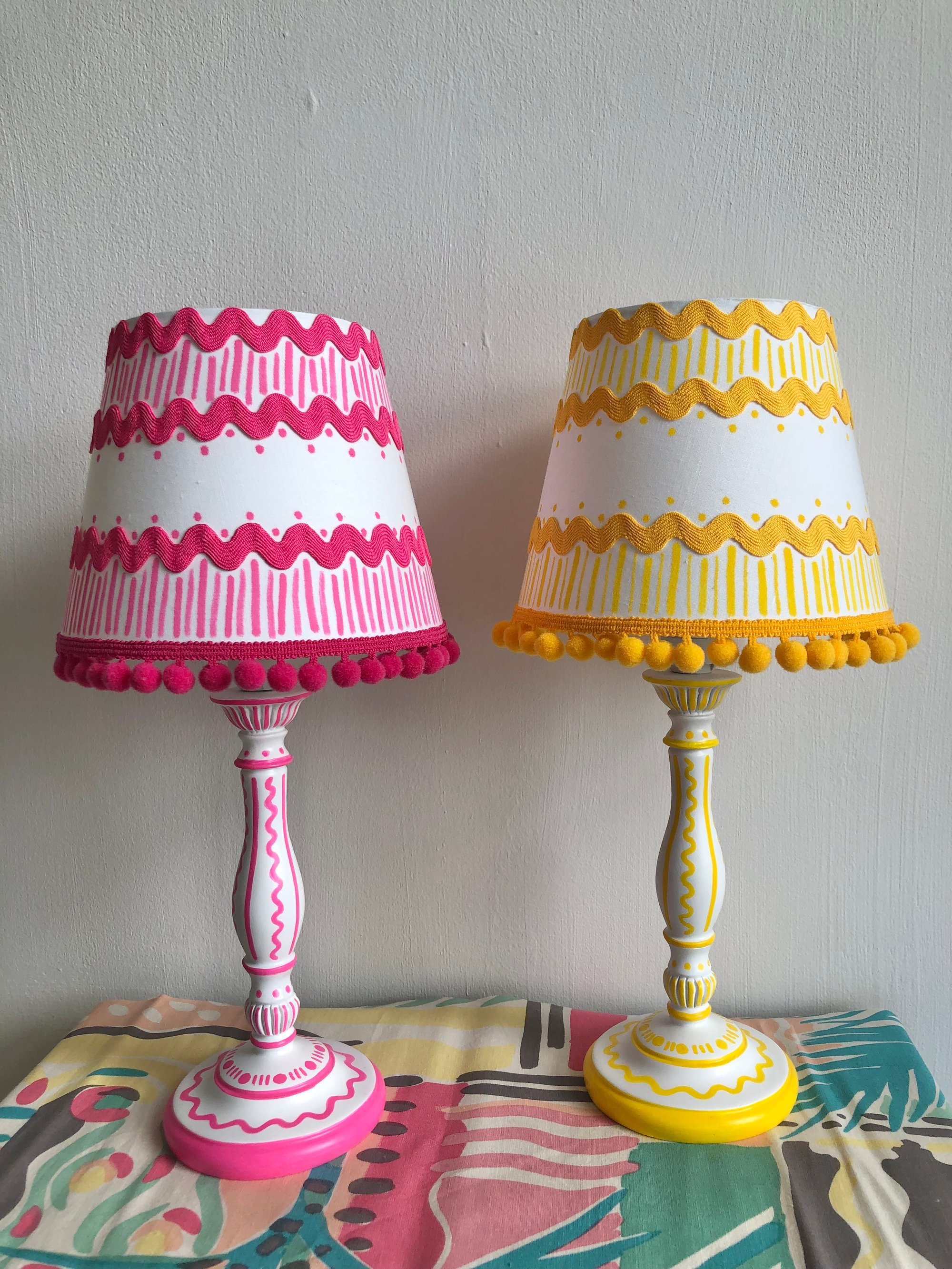 One pink is in stock, but I usually paint to order. If you would like a pair, or a different colour (blue, red and green have all been popular), Please use the contact form to get in touch, or use the 'commissions' listing to order different styles and colours.