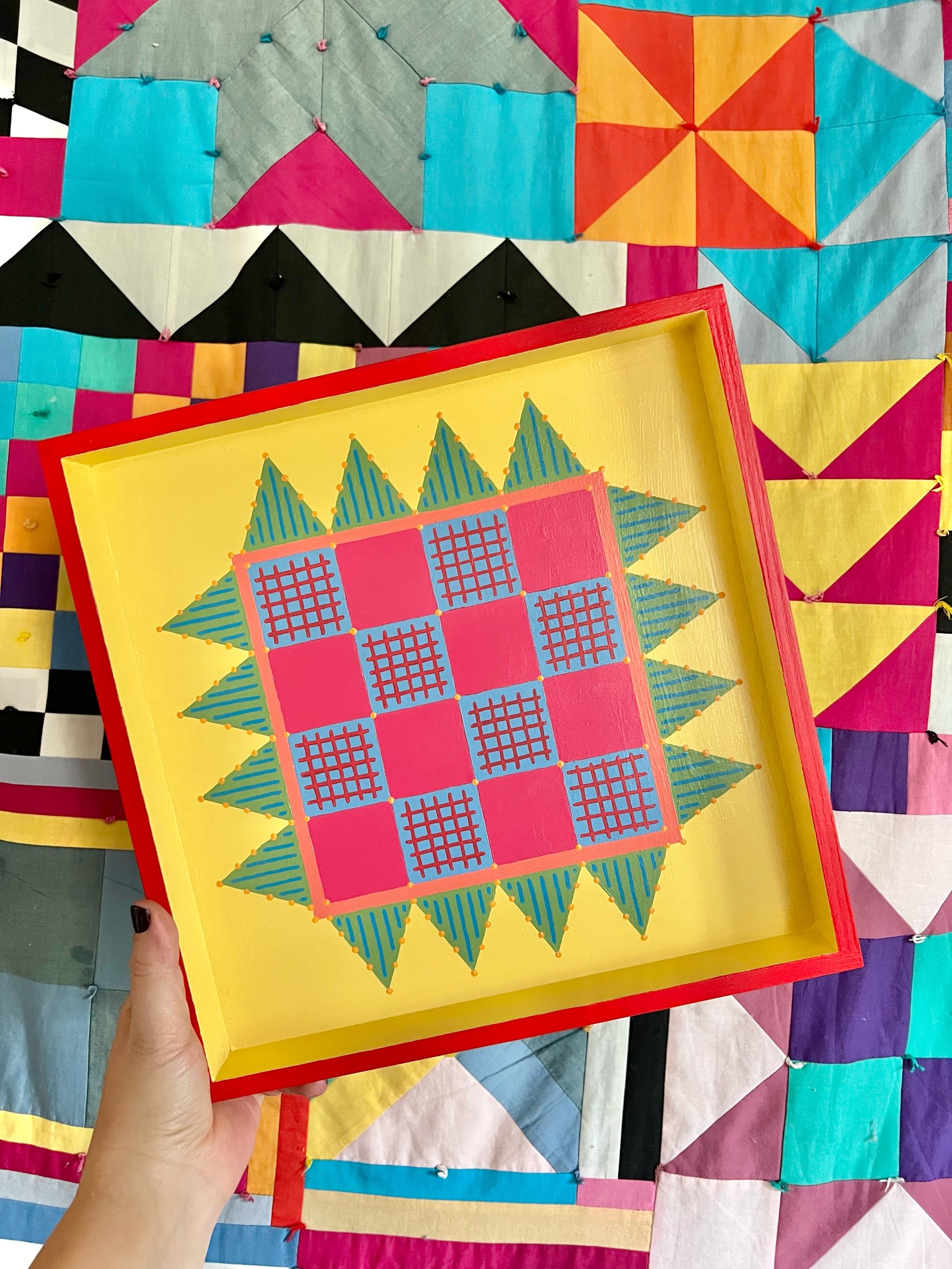 Painted Patchwork Tray (Red)